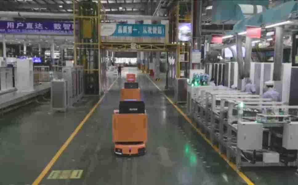为车载冰箱物流配送打造的智能解决方案,,,包含产中物流通过潜伏举升AMR搬运至线边,,,,产后成品物流智能仓储,,,流程包含产中物流智能齐套入库,,,线边安灯叫料AMR智能配送至线边,,成品入库、、、出库,,,,通过无人堆高车机器人,,,,智能仓储管理替代人工作业管理,,,实现更高存储、、、更高效率、、更具柔性化的解决方案。。。